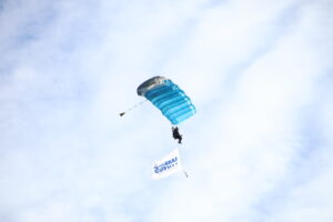 オープニングで行うはずだったスカイダイビングや、防災ヘリ救助デモ (の代わりのフライバイ) が実施されてました